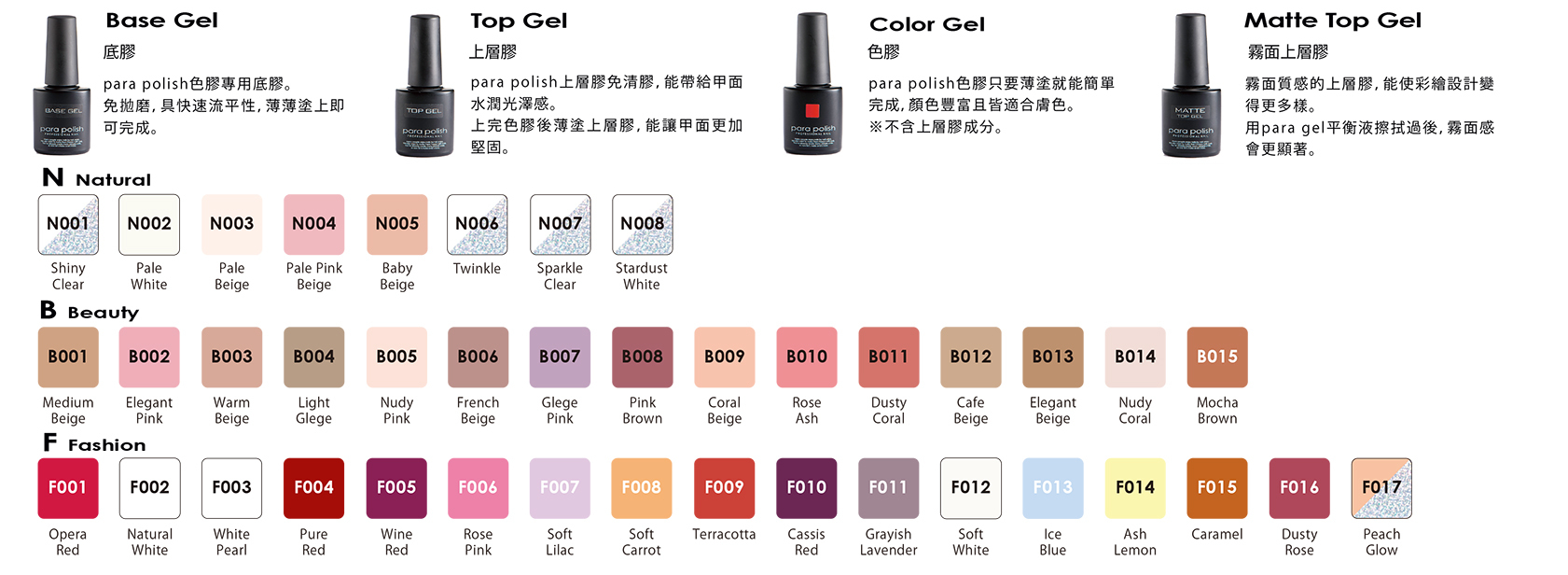 para gel 以及 Putiel 相關檔案開放下載: 色卡 / 使用方法 / 課程相關 / 訂購單
